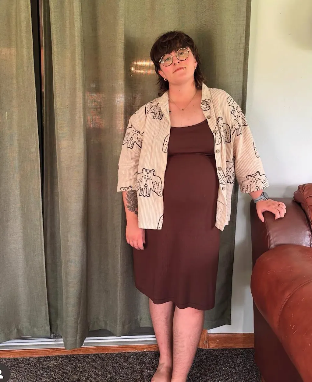 Audrey (30 weeks pregnant) wears size M (36A)